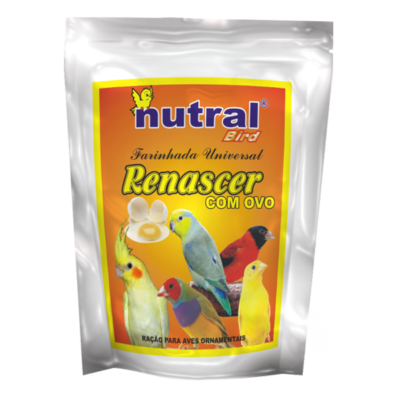60% gluten bran, powdered whole egg, wheat germ, ground corn, soy bran, wheat bran, dicalcium phosphate, sodium chloride, calcite limestone, vitamin and mineral premix and refined soy oil, artificial aroma of fruits.
