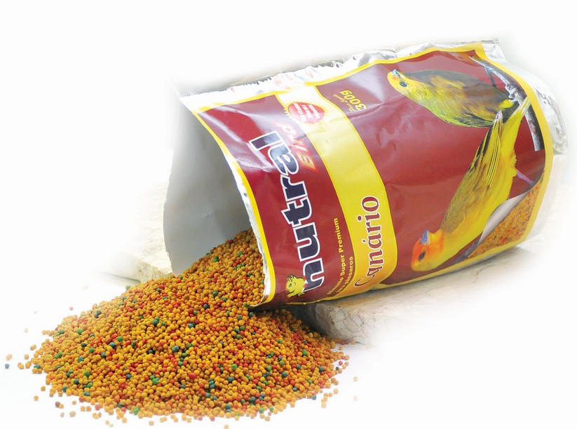 Fubá de milho, farelo de glúten de milho 60%, óleo de soja, farelo de soja, painço português, levedura de cerveja, cloreto de sódio (sal comum), gérmen de trigo, fosfato bicálcico, alfafa desidratada, aveia descascada, mel, prémix mineral e vitamínico, corante vermelho mistura, verde folha e amarelo tartrazina, amarelo crepúsculo, essência de jiló.